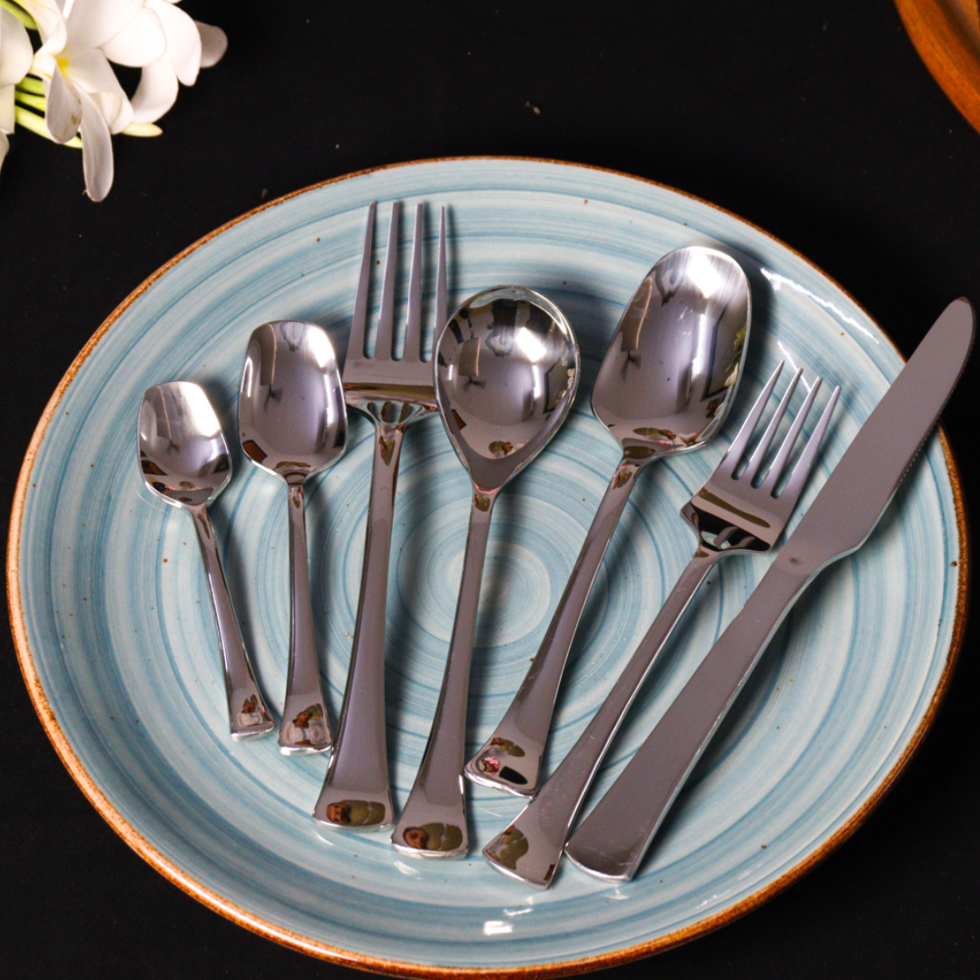 Silver Colour Coated Cutlery Set is crafted from high-quality stainless steel, ensuring durability and resistance to corrosion.